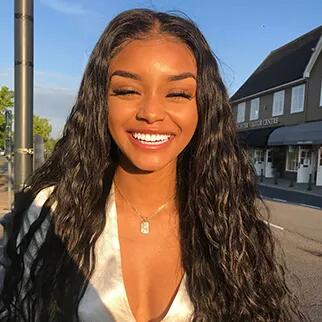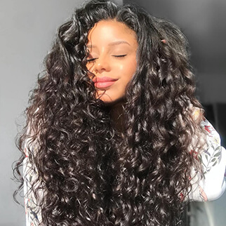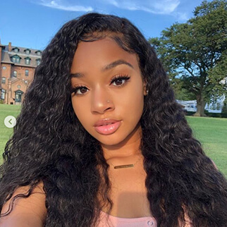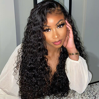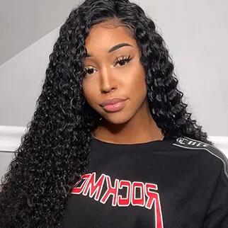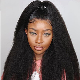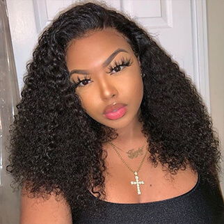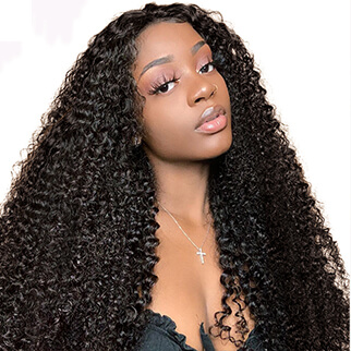 Hurela Gorgeous and Luxurious Kinky Curly Glueless Human Hair Wigs Transparent Lace Frontal Wig 150% Density Natural Black