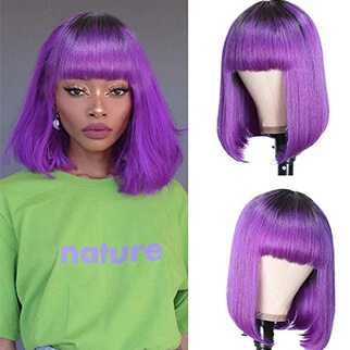 Hurela 13x4 Transparent Lace Ombre Smokey Deep Purple Black Root Frontal Body Wave Colored Glueless Wig