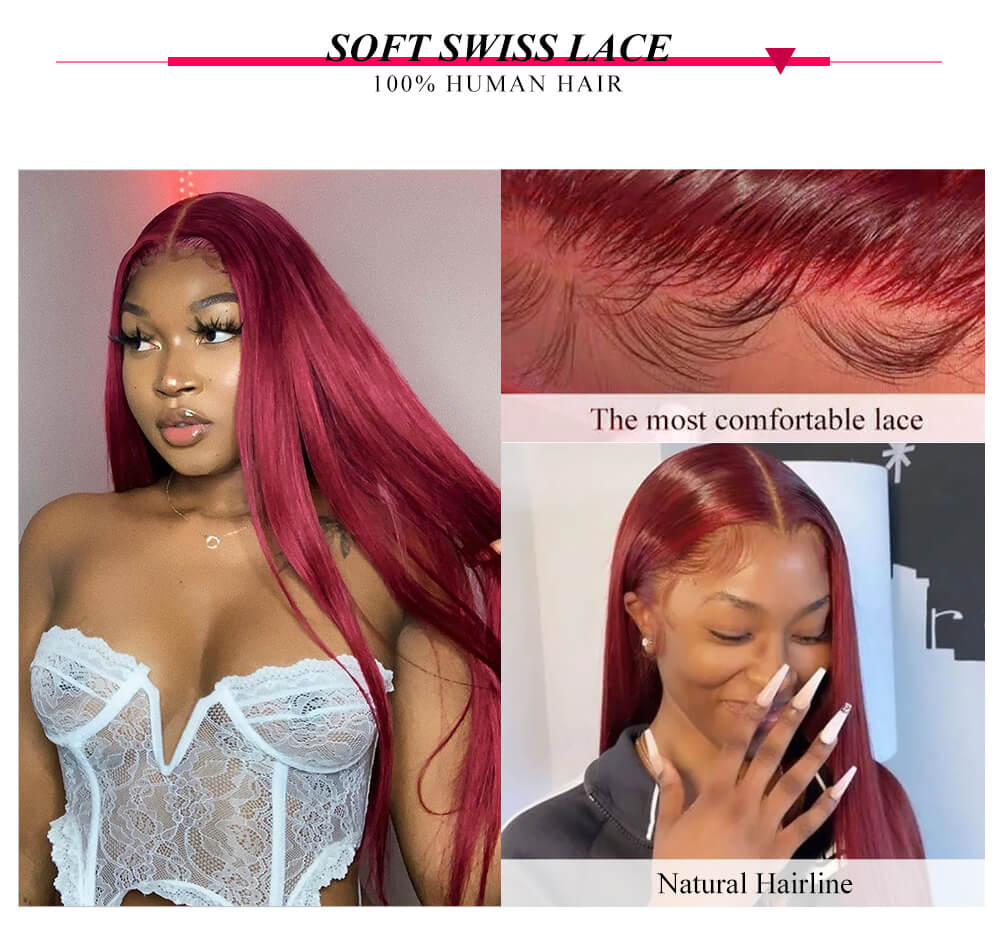 Hurela 99J Color Straight Burgundy Color Human Hair 4x0.75 Lace Part Wigs With Baby Hair Colored Wigs Facebook Special Sale