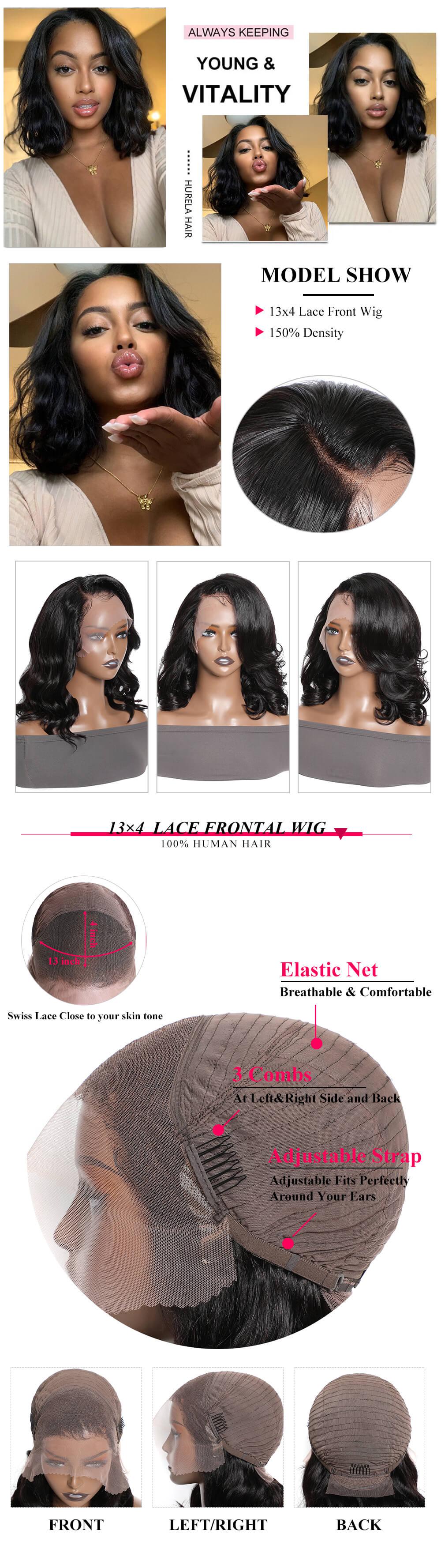 Hurela 50% Off 13x4 Lace Frontal Natural Wave Bob Human Hair Wig 180% Density Facebook ad Special Sale