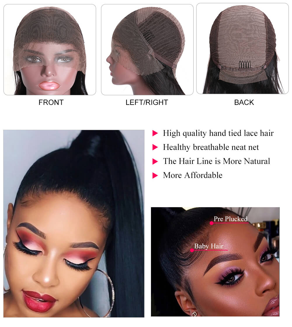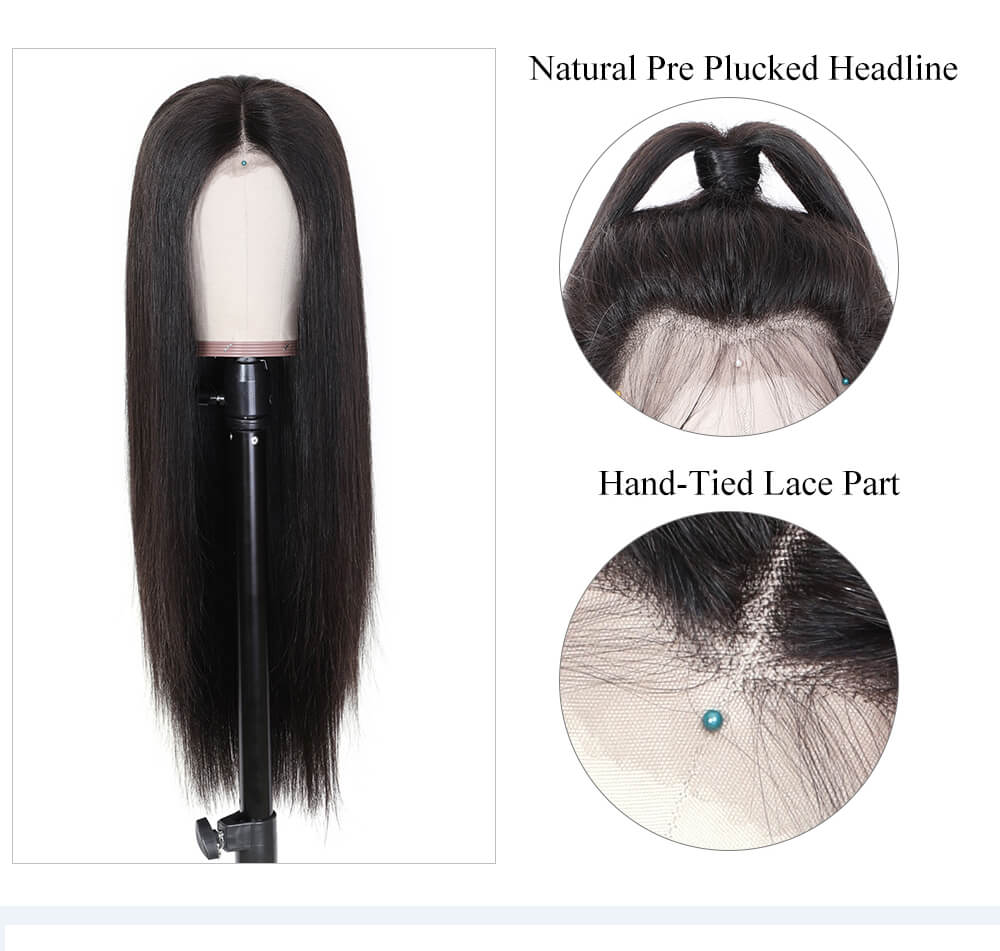 Hurela Natural Color High-Quality Long Straight 13x4 Lace Frontal Wigs Virgin Human Hair Wigs Blackfriday Sale(2:00-3:00pm)