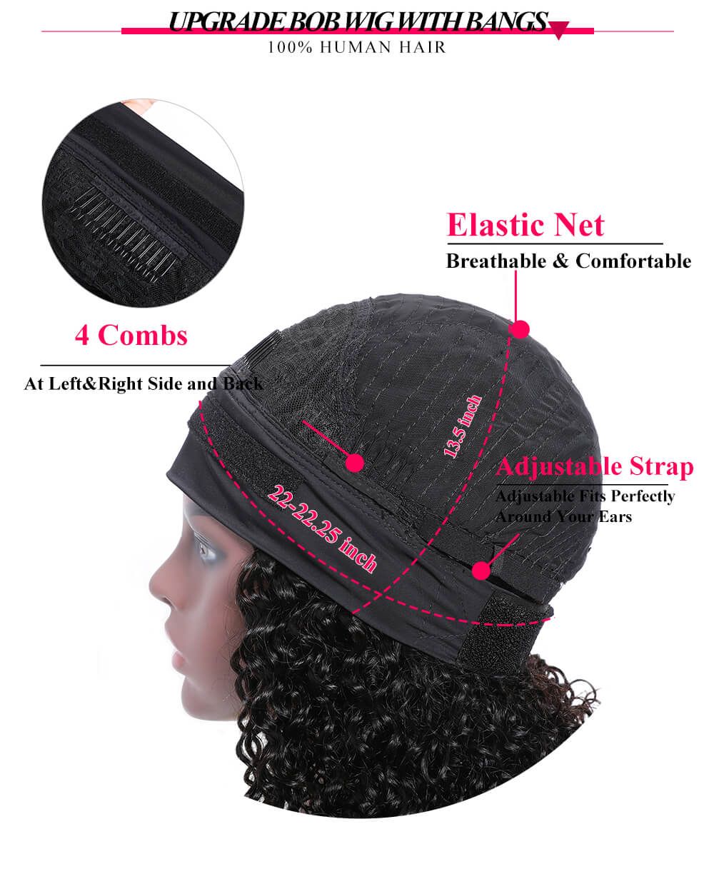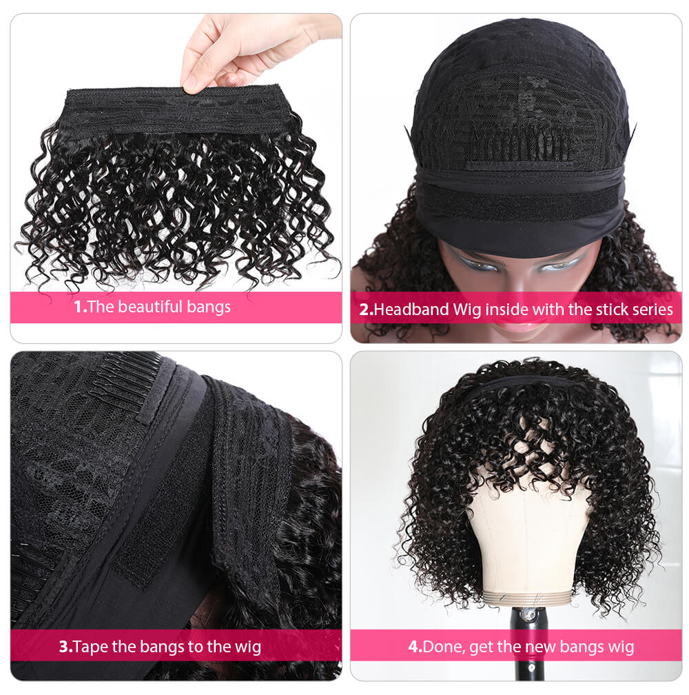 Hurela Best Human Hair Headband Wigs 150% Density Jerry Curly Wig With Removable Bangs Natural Black Color Msnaturally Mary