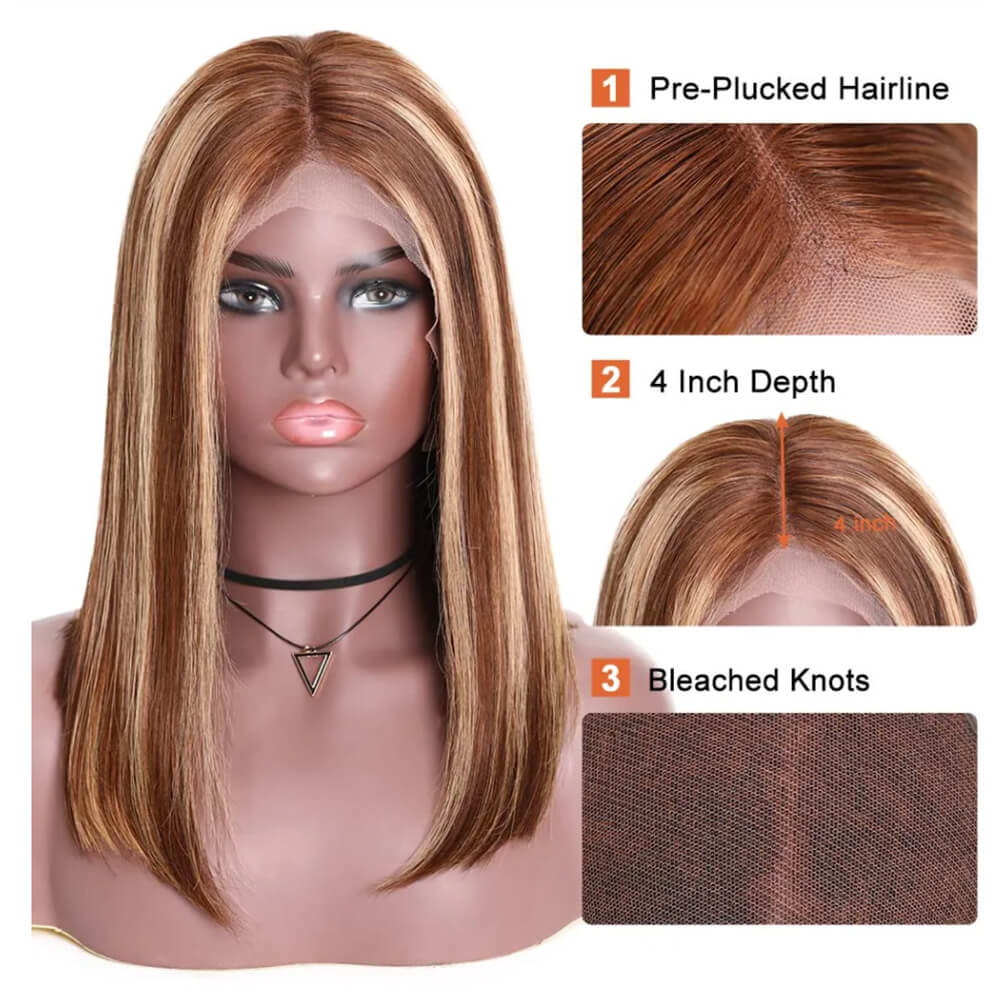 Hurela Blonde Bob Straight Human Hair Wig 13x4 Lace Front Wigs #TL412