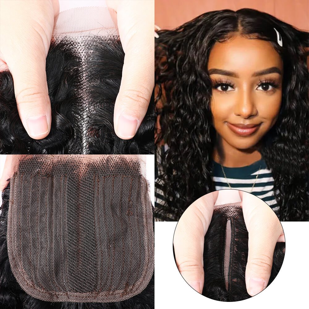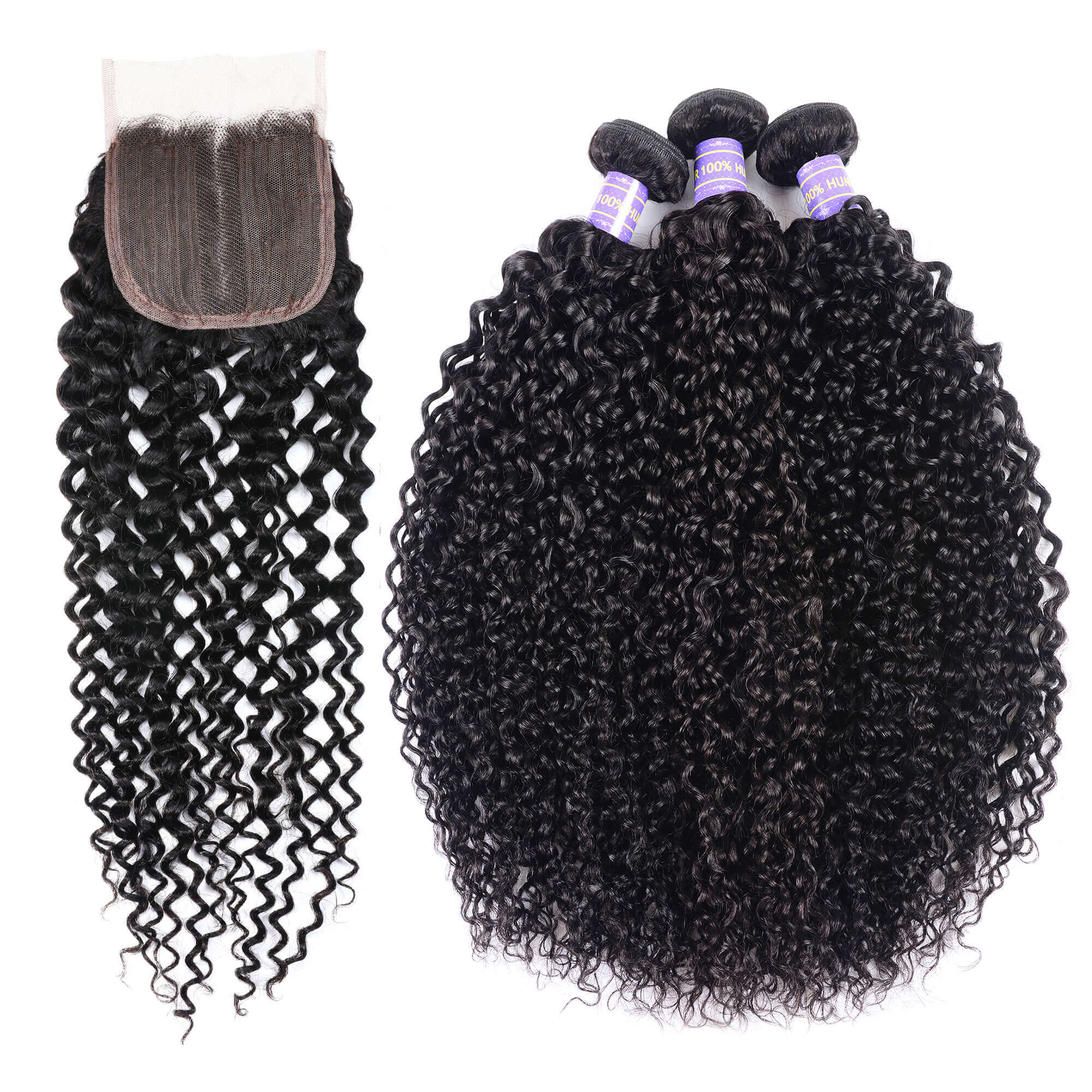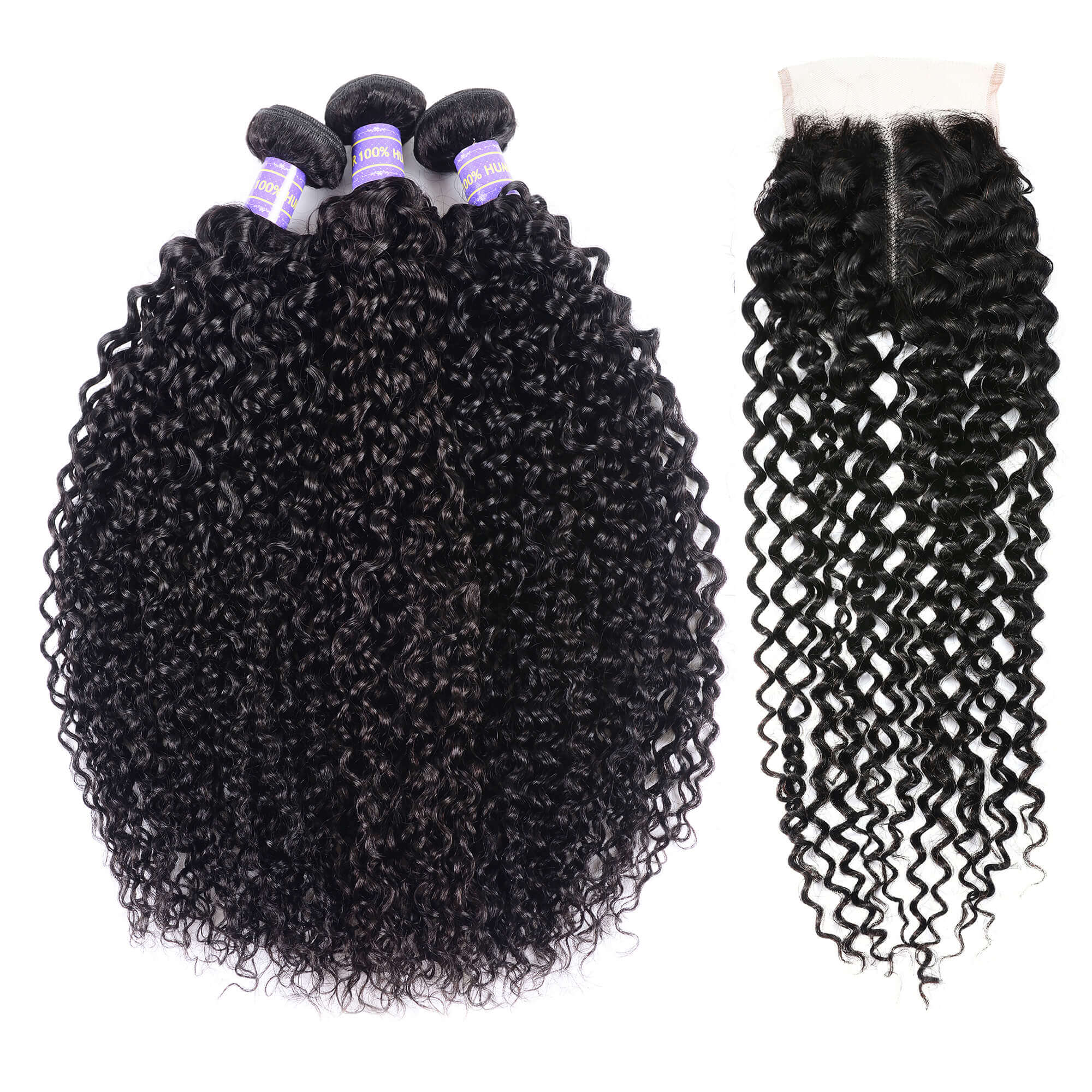 Hurela Brazilian Hair Curly Weave 3 Bundles With T Part Lace Closure