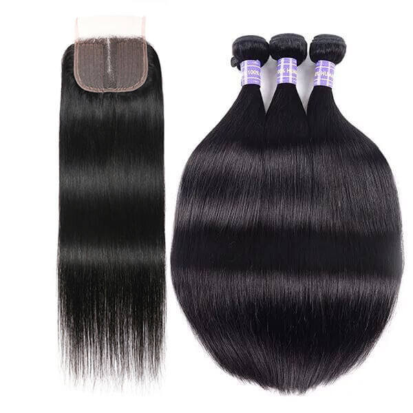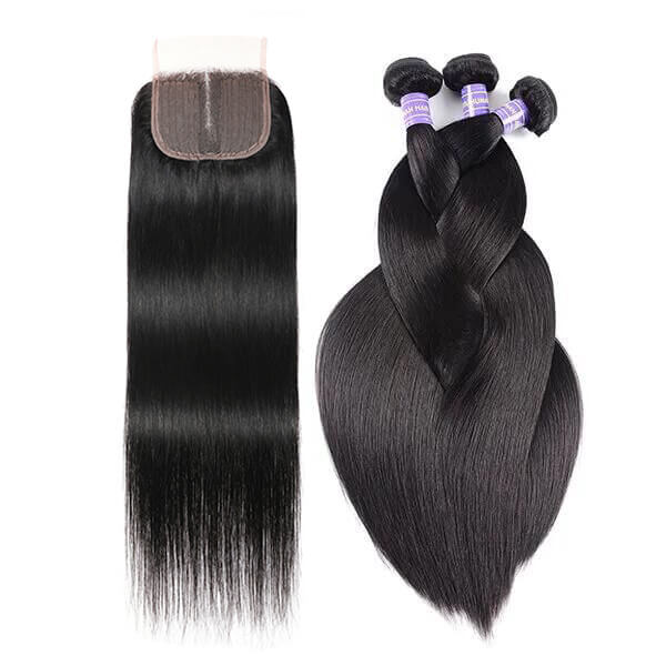 Hurela Brazilian T Part Lace Closure With 3 Bundles Straight Hair