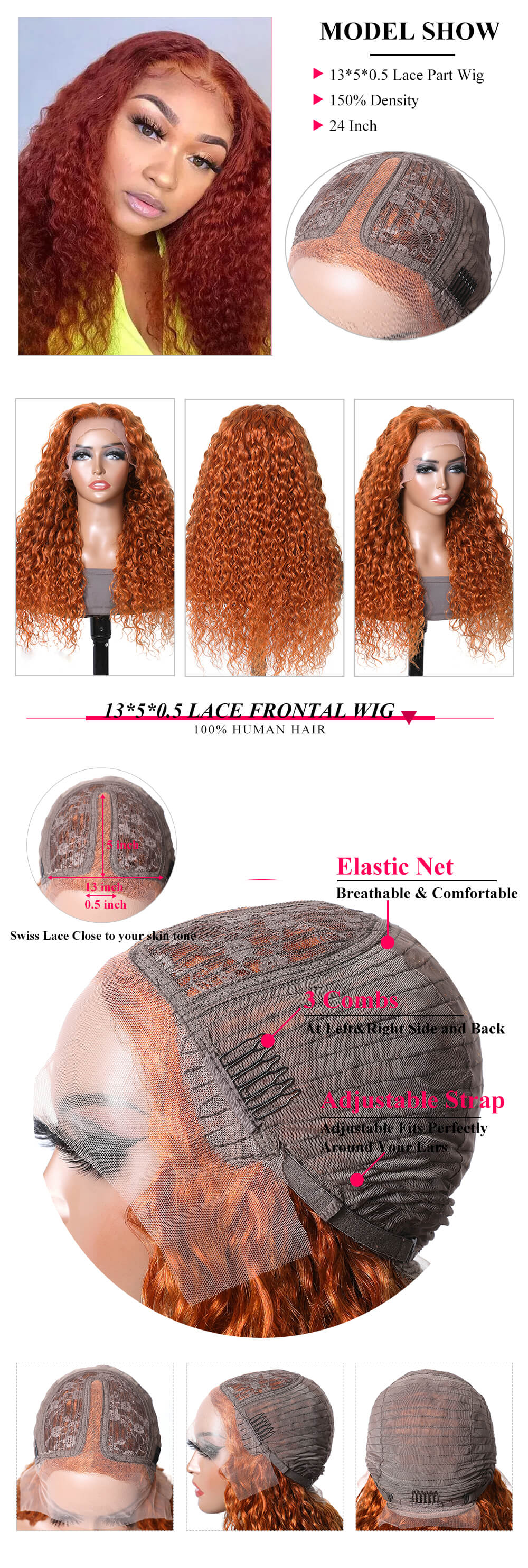| Meta Keywords | Burnt Orange Water Wave T Part Wigs Ginger Wig |