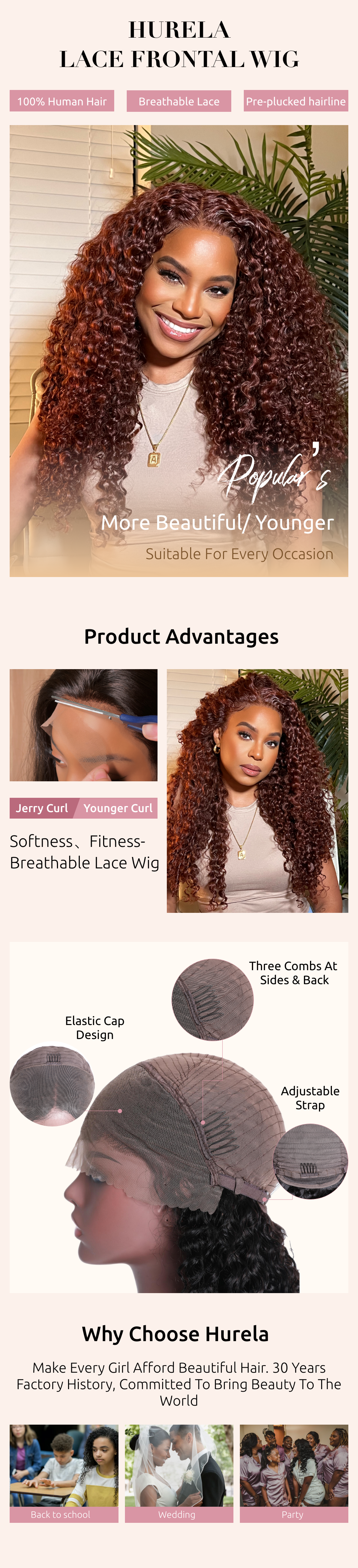 Hurela Cheap Brownish Red Color Kinky Curly Glueless Hair 13x4 Colored Transparent Lace Front Wigs With Baby Hair Get AMEERA Same Hair Style