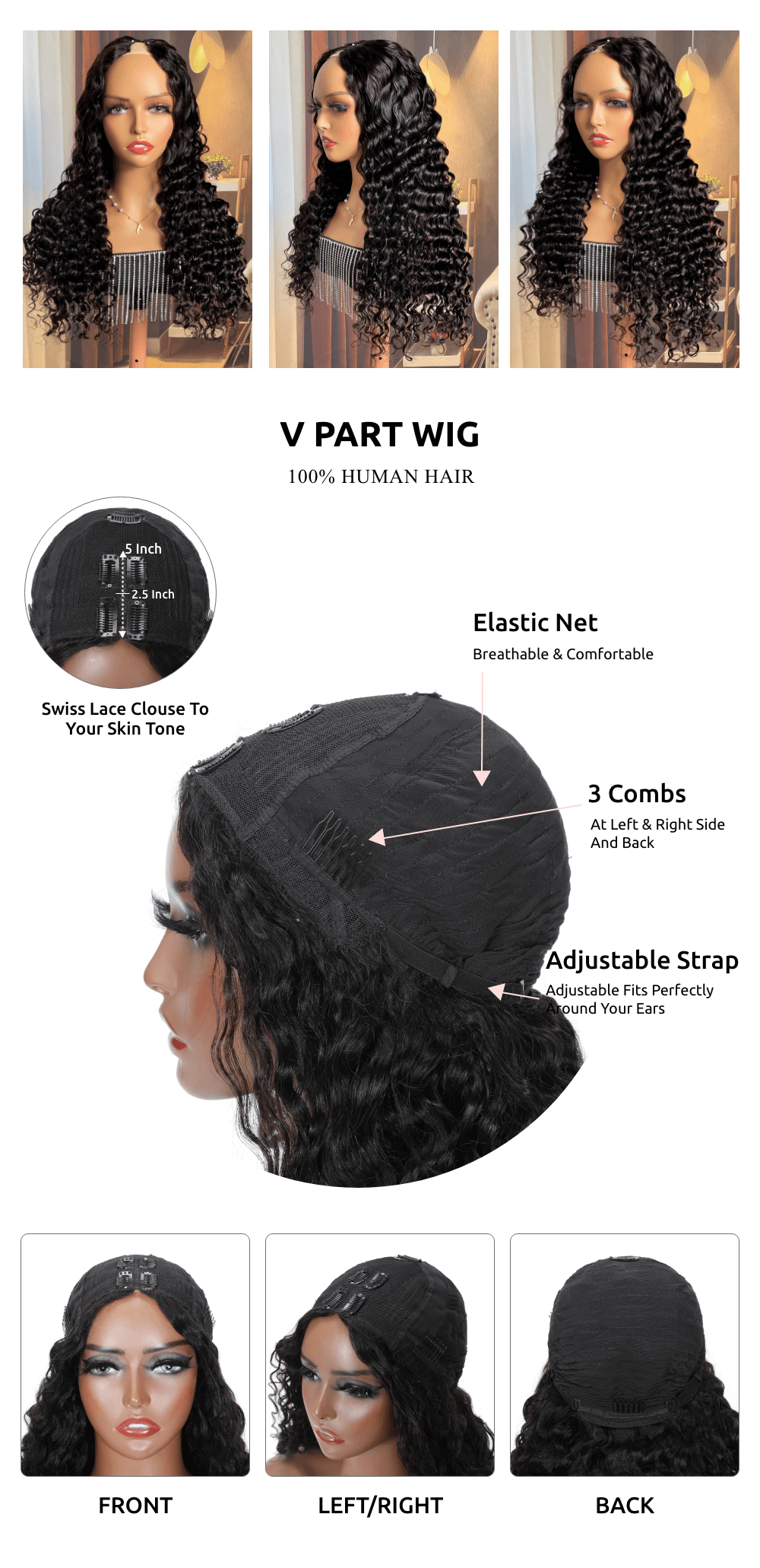 Hurela Cheap Deep Wave V Part Wigs No Leave Out Natural Scalp Protective Upgrade U part Human Hair Wigs Whatsapp Falsh Sale
