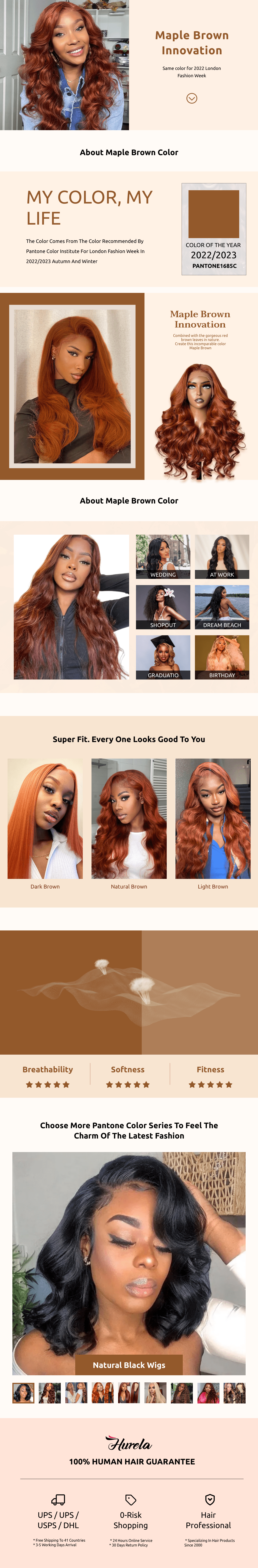 Hurela Copper Brown 13x4 Transparent Lace Front 150% Body Wave Glueless Wig 180% Density Get Maiyathedon Same Hair Style