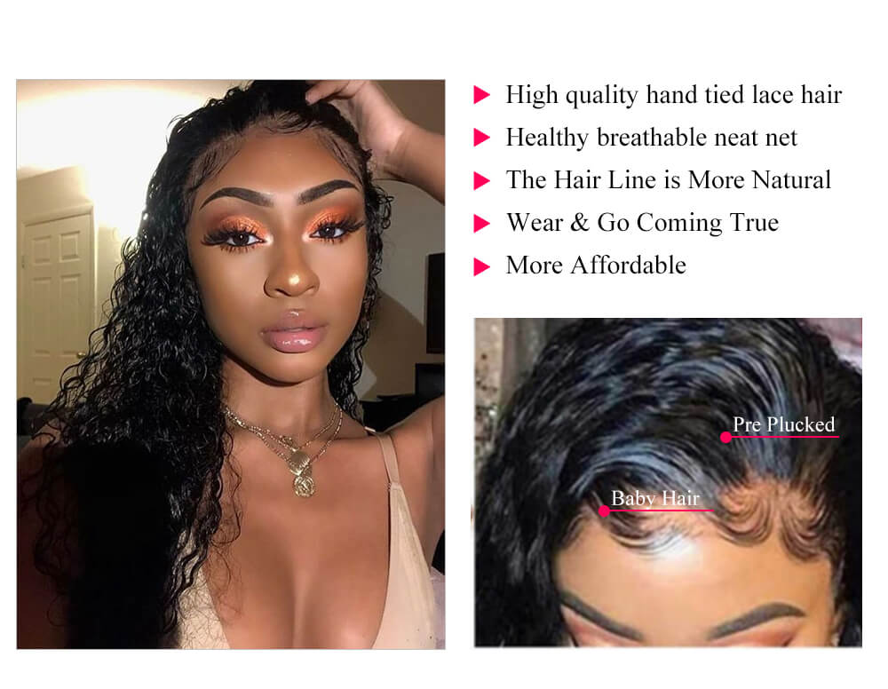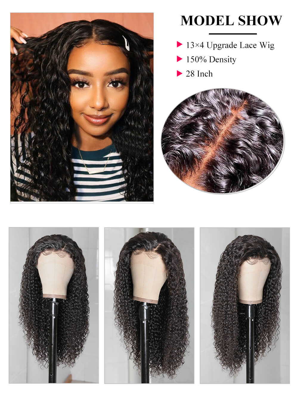 Hurela 13x4 Curly Lace Front Wig 150% Density Pre-plucked Wig Natural Color