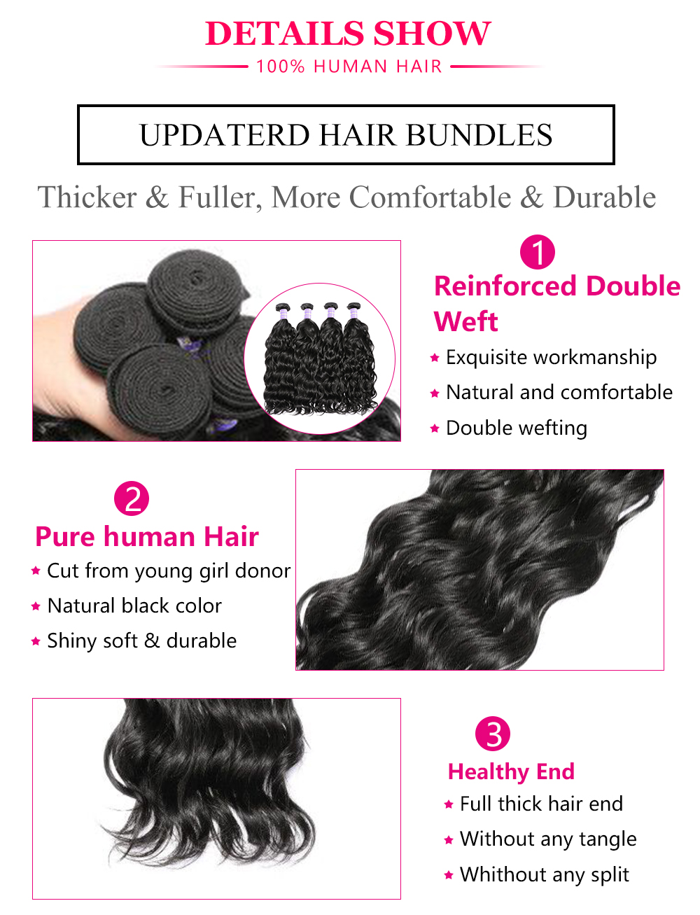 | Meta Keywords | 100% Human Virgin Hair, Natural Wave Hair Bundles, Bundles With 4x4 Lace Closure |