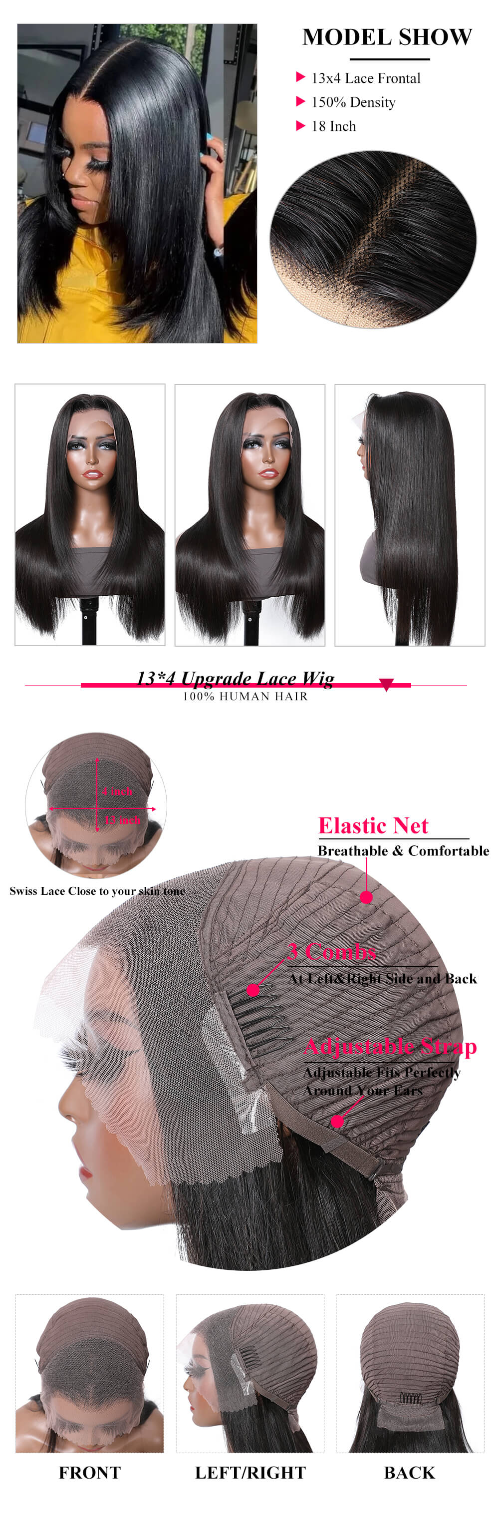 Hurela High Quality Straight 13x4 Lace Front Wig 100% Remy Human Hair Wig 150% Density