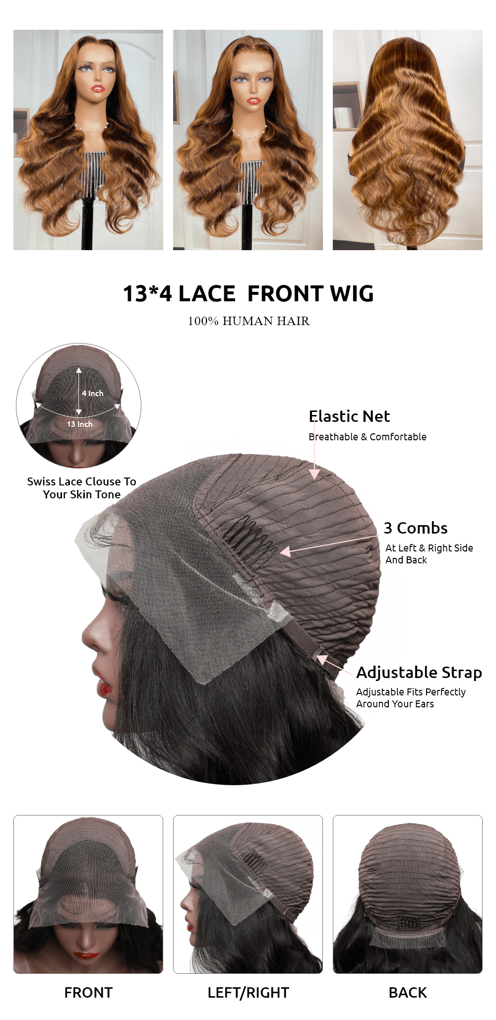 Hurela Highlight Color Body Wave Human Hair Wig 13x4 Lace Front Colored Wigs For Women 150% Density