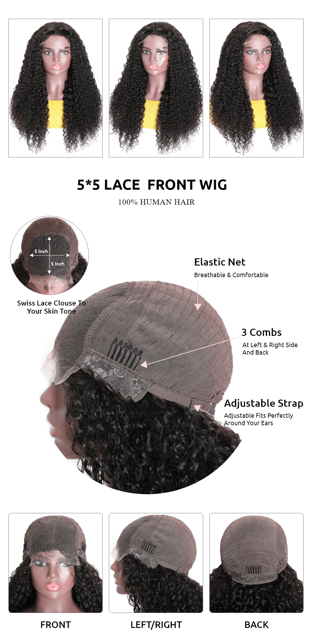 | Hair Quality | 8A Grade 100% Human Hair, No Tangle, No Shedding |