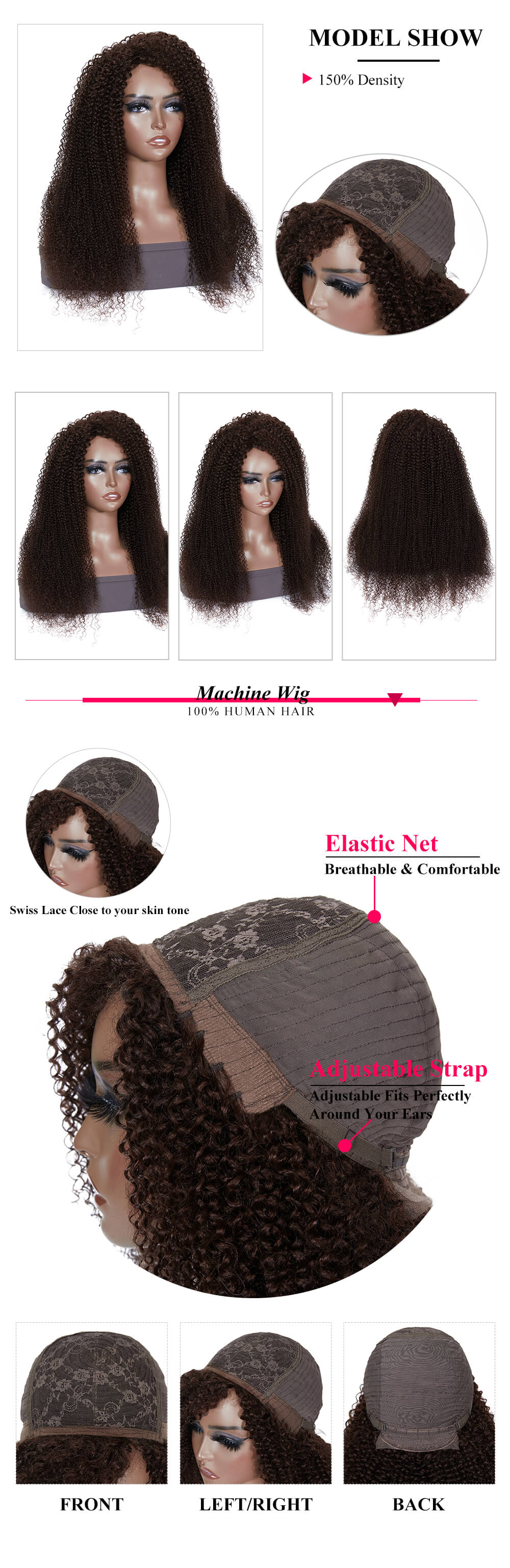 Hurela Kinky Curly Glueless Wigs Full Color Human Hair Wigs 150% Density Color #2 Member