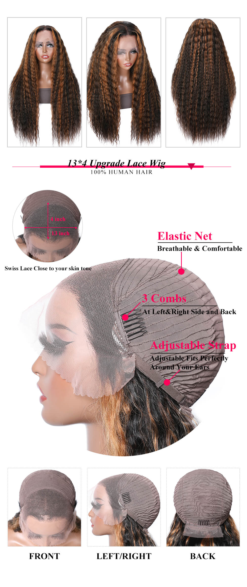 | Hair Quality | 8A Grade 100% Human Hair, No Tangle, No Shedding |