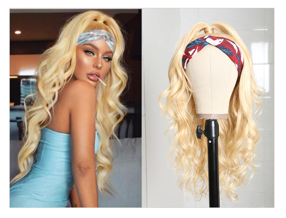 Hurela Pre-attached Scarf Best headband wigs Natural Wave Human Hair Wigs 613 Blonde Color Clearance Sale
