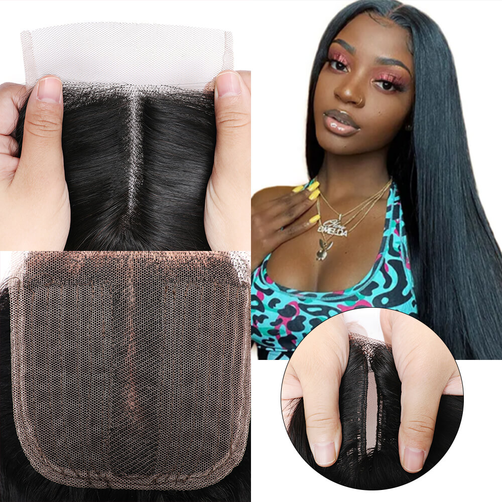 Hurela Straight Natural Black 4 Bundles Hair With T Part Lace Closure
