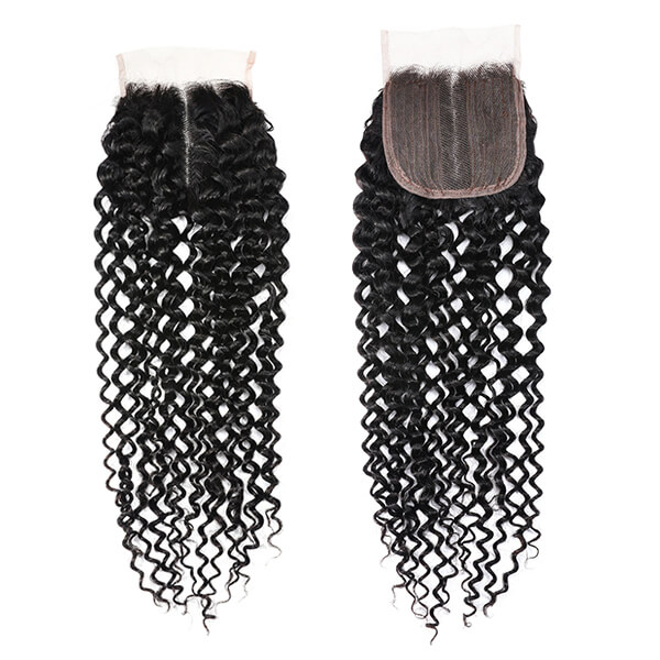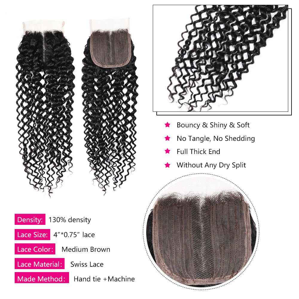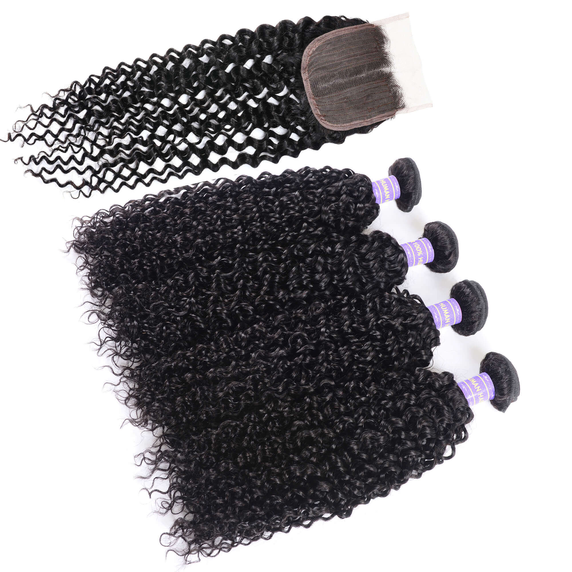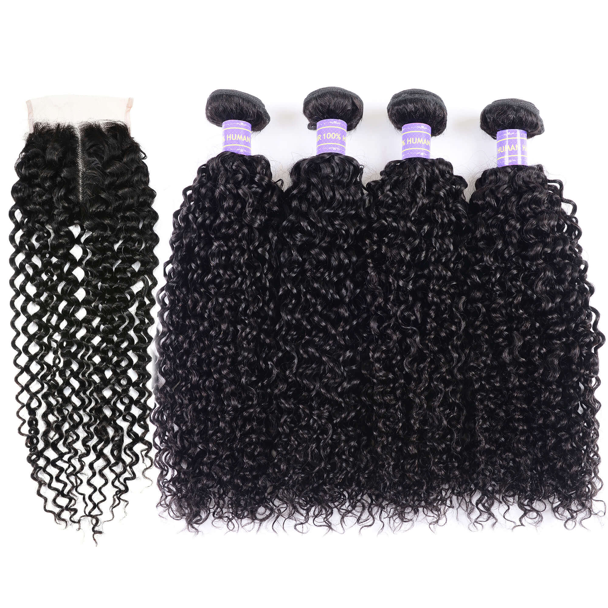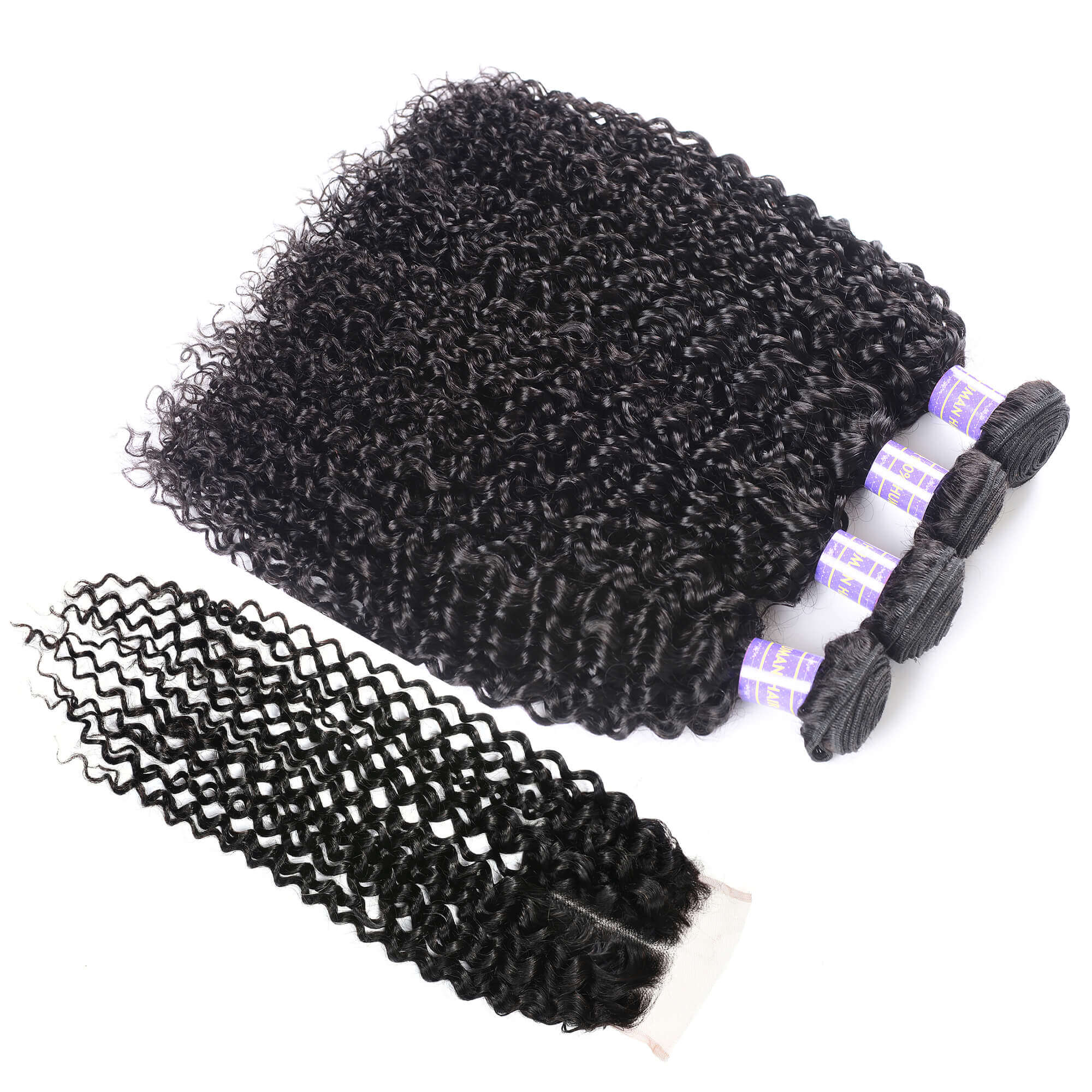 Hurela T Part Lace Closure With Jerry Curly 4 Bundles Natural Color