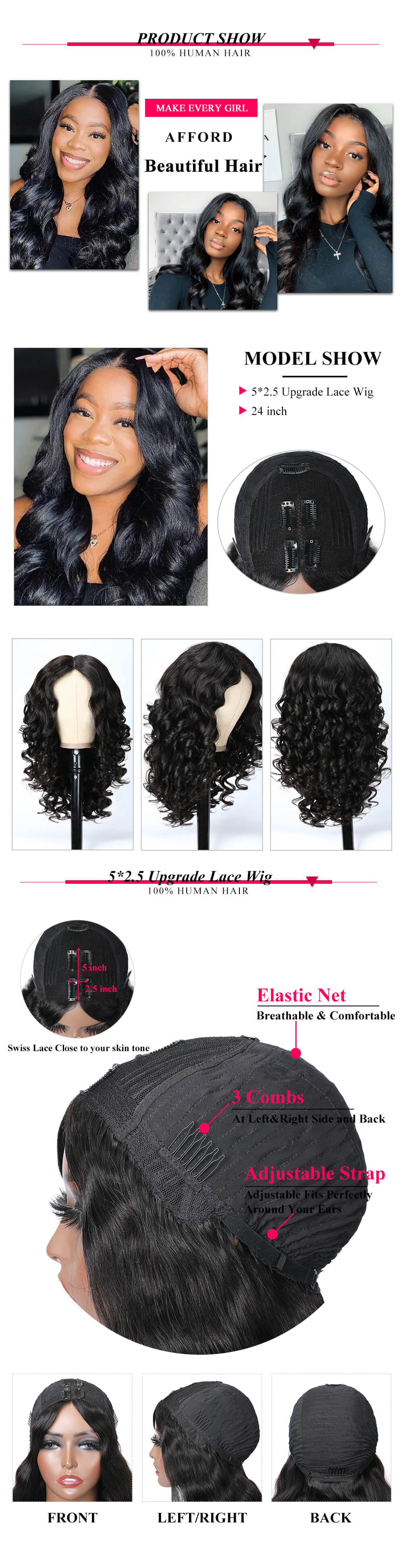 Hurela V Part Body Wave Wig No Leave Out Free Part Upgrade U Part Human Hair Wig Natural Color Whatsapp Flash Sale
