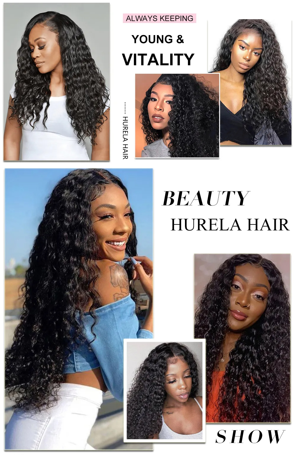 Hurela Water Wave 13x4 Lace Frontal Wig 100% Human Hair 150% Density Natural Color