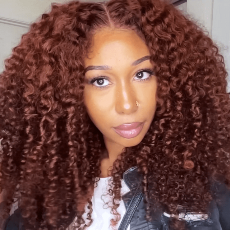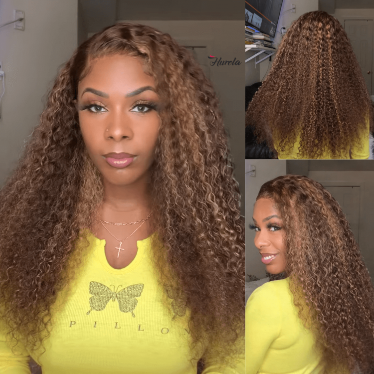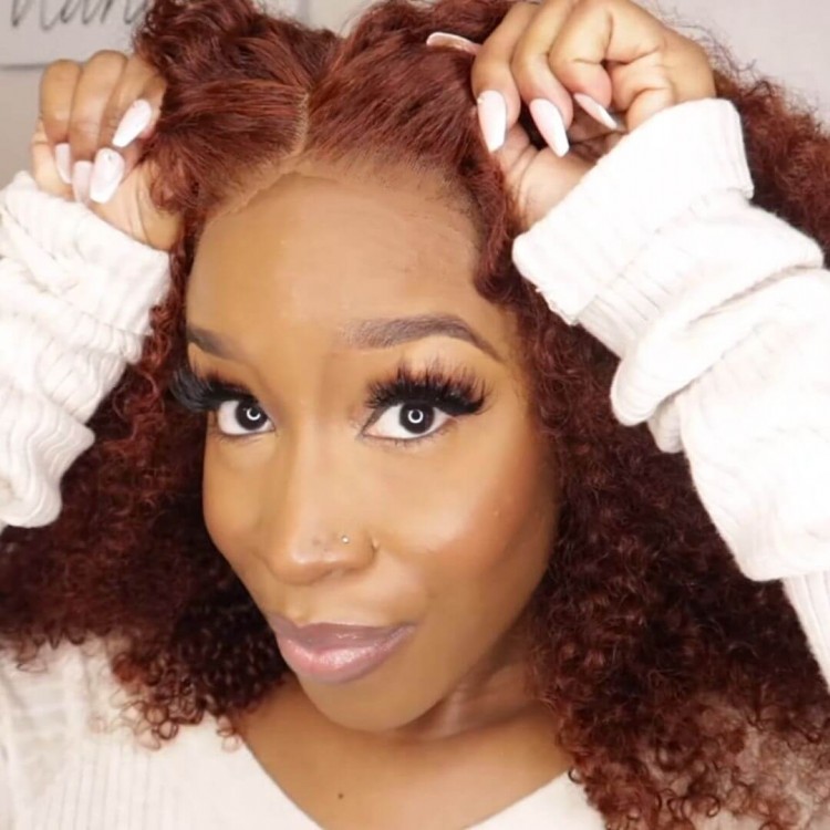 Hurela 4x0.75 Lace Burgundy Colored Jerry Curly 13X4 HD Lace Front Pre-Plucked Wig | Get Cajunfootrub Same Hair Style